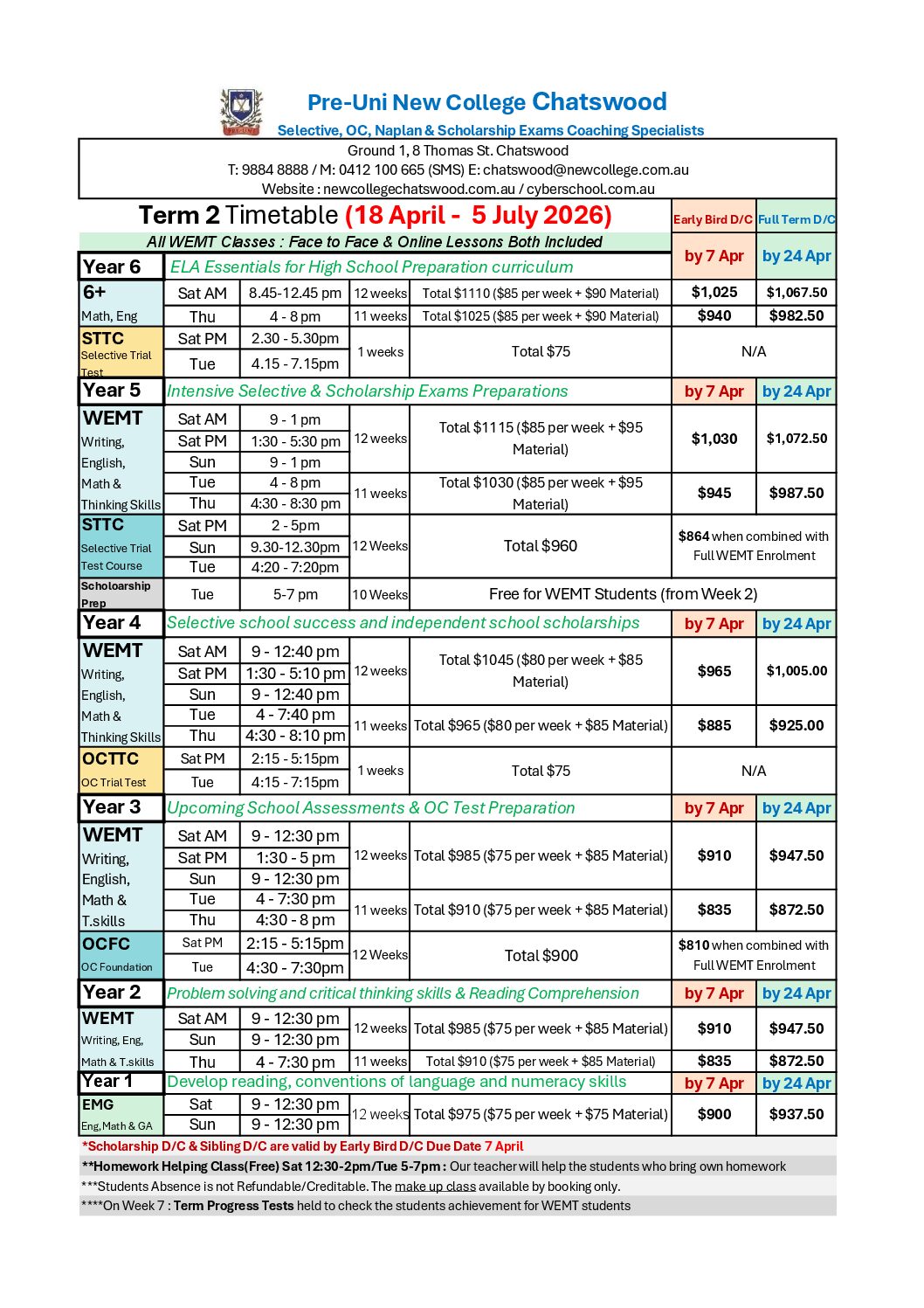 We specialise in delivering well-structured tutoring programs to assist students reach their goals for OC (Opportunity Class) placement, Selective High School placement, Private School scholarships, and HSC excellence.